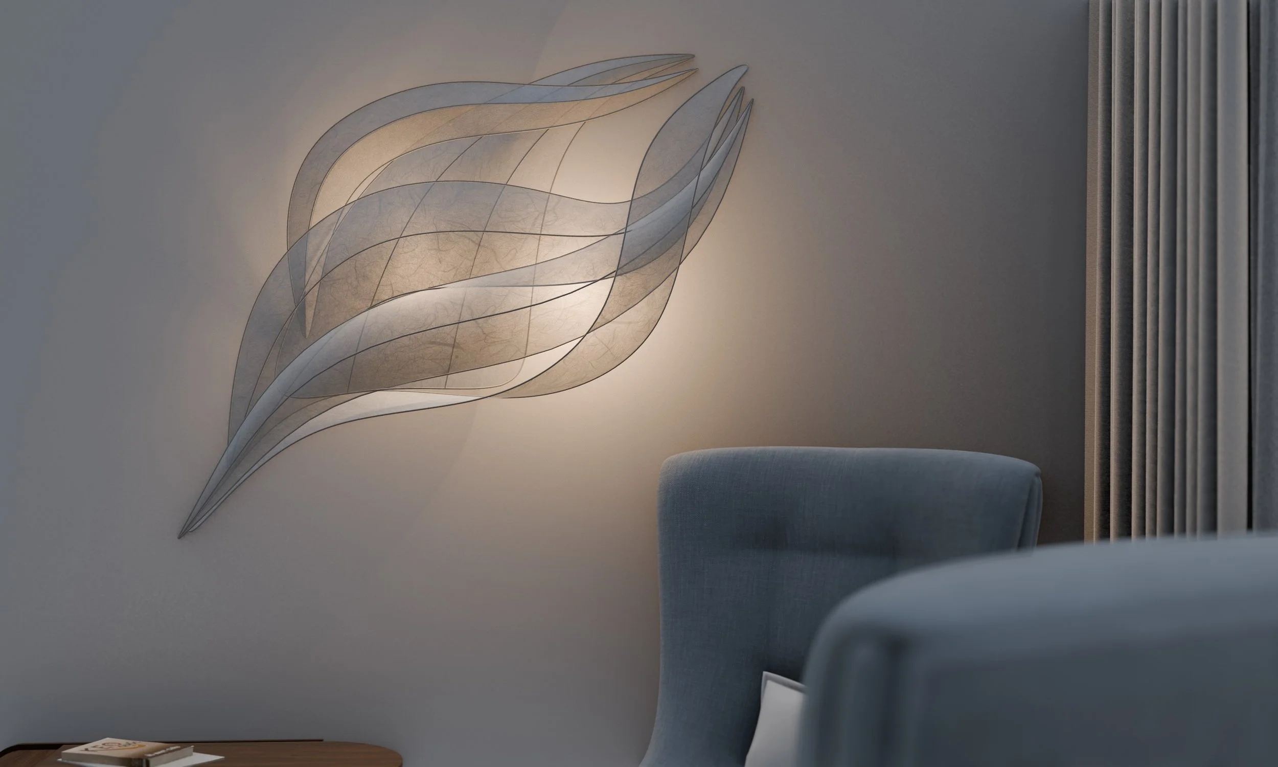 3D-Entwürfe für die Wandleuchte eines Therapieraumes (Beispielszenerie). Material: Rattan/Peddigrohr, Mulberry Paper. Ähnliche Wandleuchten finden Sie in meinem Portfolio.