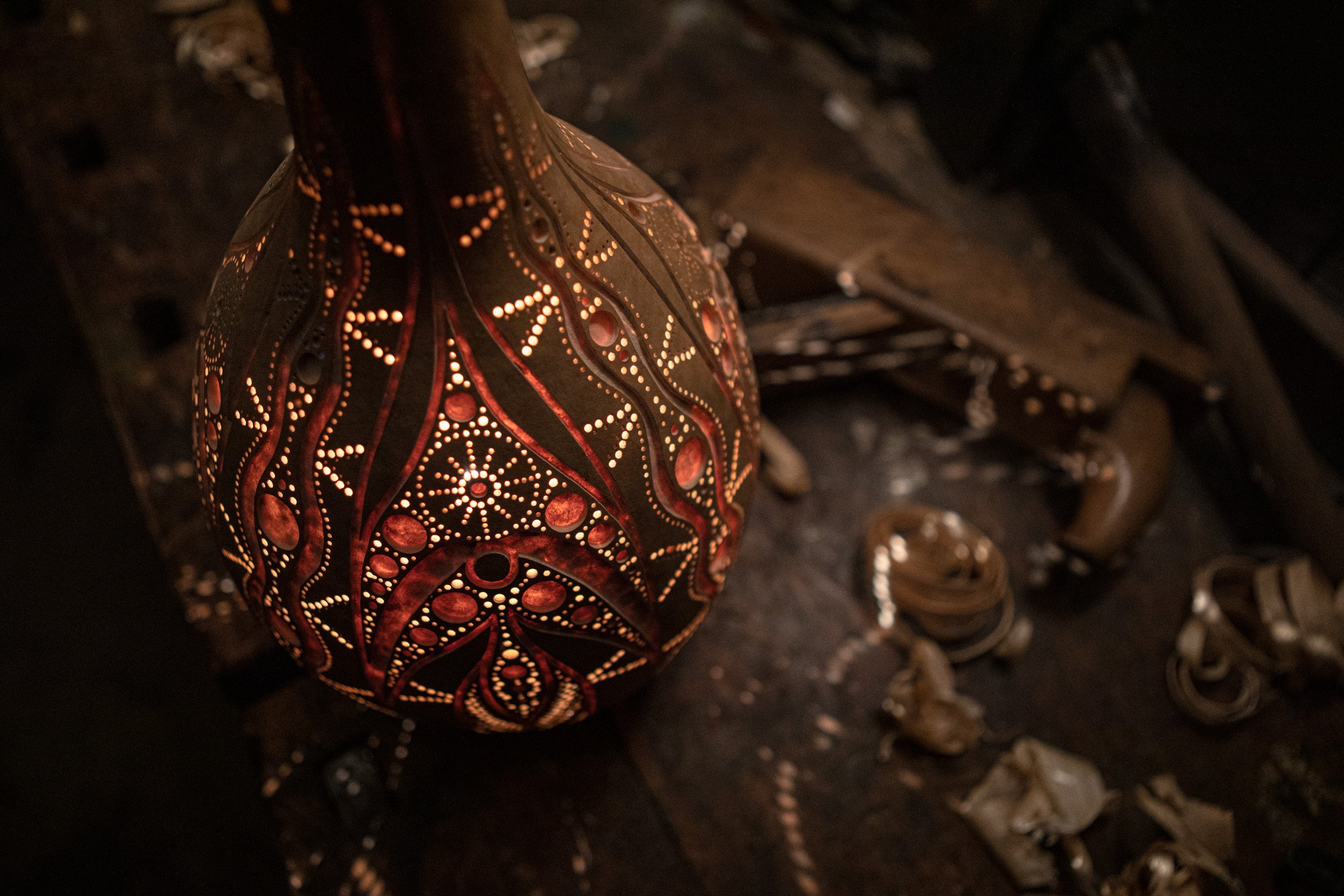 Material: Peddigrohr, Wurzelholz, Mulberry Paper